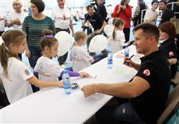 «Нужны ли такие мастер-классы?» В ответ на риторический вопрос четырехкратного олимпийского чемпиона по спортивной гимнастике, вице-президента Федерации спортивной гимнастики России Алексея Немова грянуло оглушительное «Да!». «Значит, мы к вам еще приедем», - заключил самый известный воспитанник тольяттинской школы спортивной гимнастики. И вместе с другими олимпиониками, с которыми прошел «огонь, воду и медные трубы» - Светланой Хоркиной, Николаем Крюковым, Еленой Замолодчиковой и Еленой Шевченко, отправился участвовать в автограф- и фотосессии.