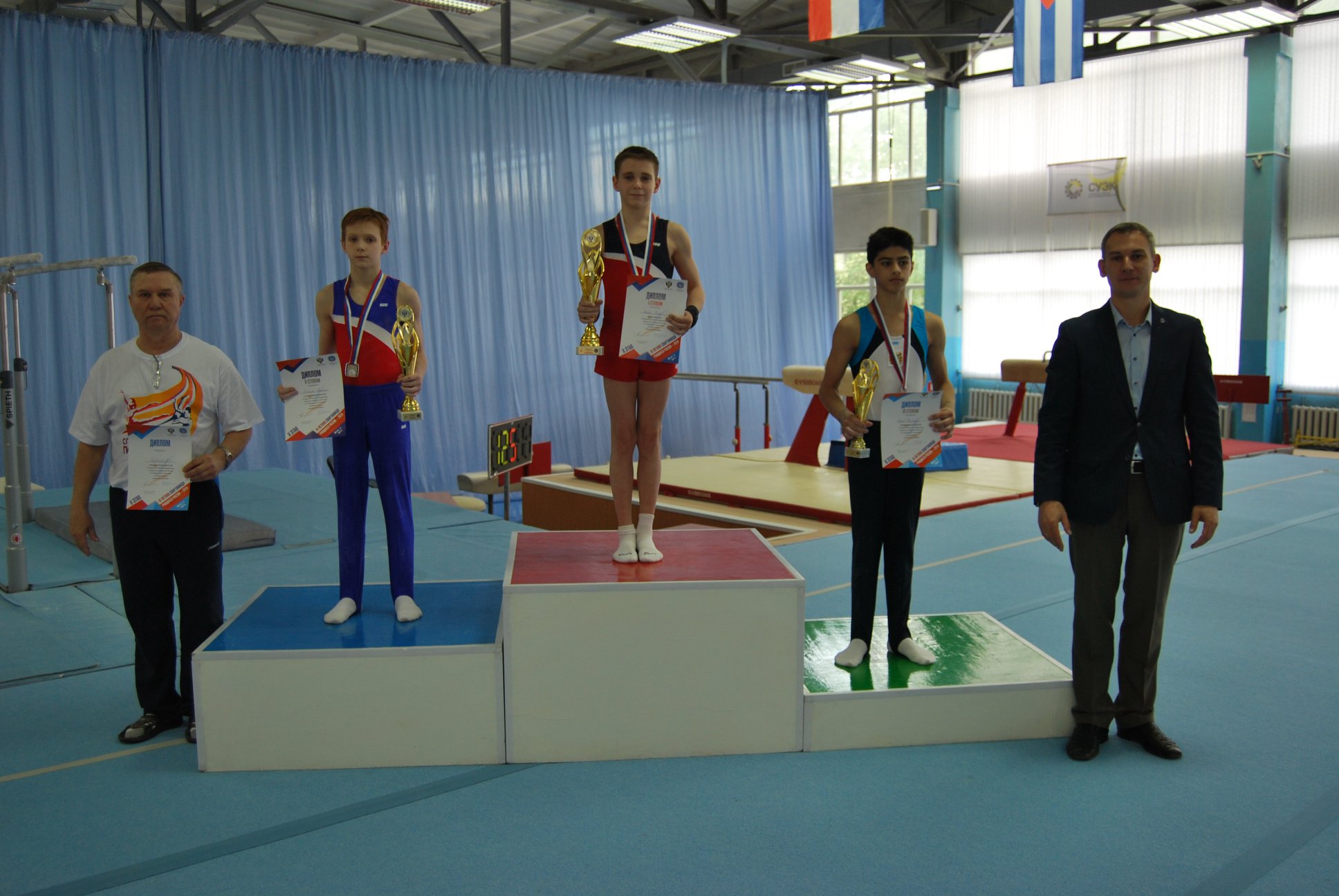 В личном первенстве среди юношей по программе I спортивного разряда победу одержал спортсмен из Томской области Шуплецов Евгений (г.Северск, 2006 г.р., тренер Захаров В.В.), «серебро» и «бронза» у кемеровских гимнастов Тютюнникова Глеба и Шиканова Тимофея соответственно.