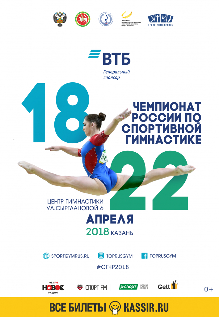 С 18 по 22 апреля 2018 года в федеральном спортивно - тренировочном центре гимнастики города Казани (ул. Сыртлановой, д.6) пройдет Чемпионат России по спортивной гимнастике.