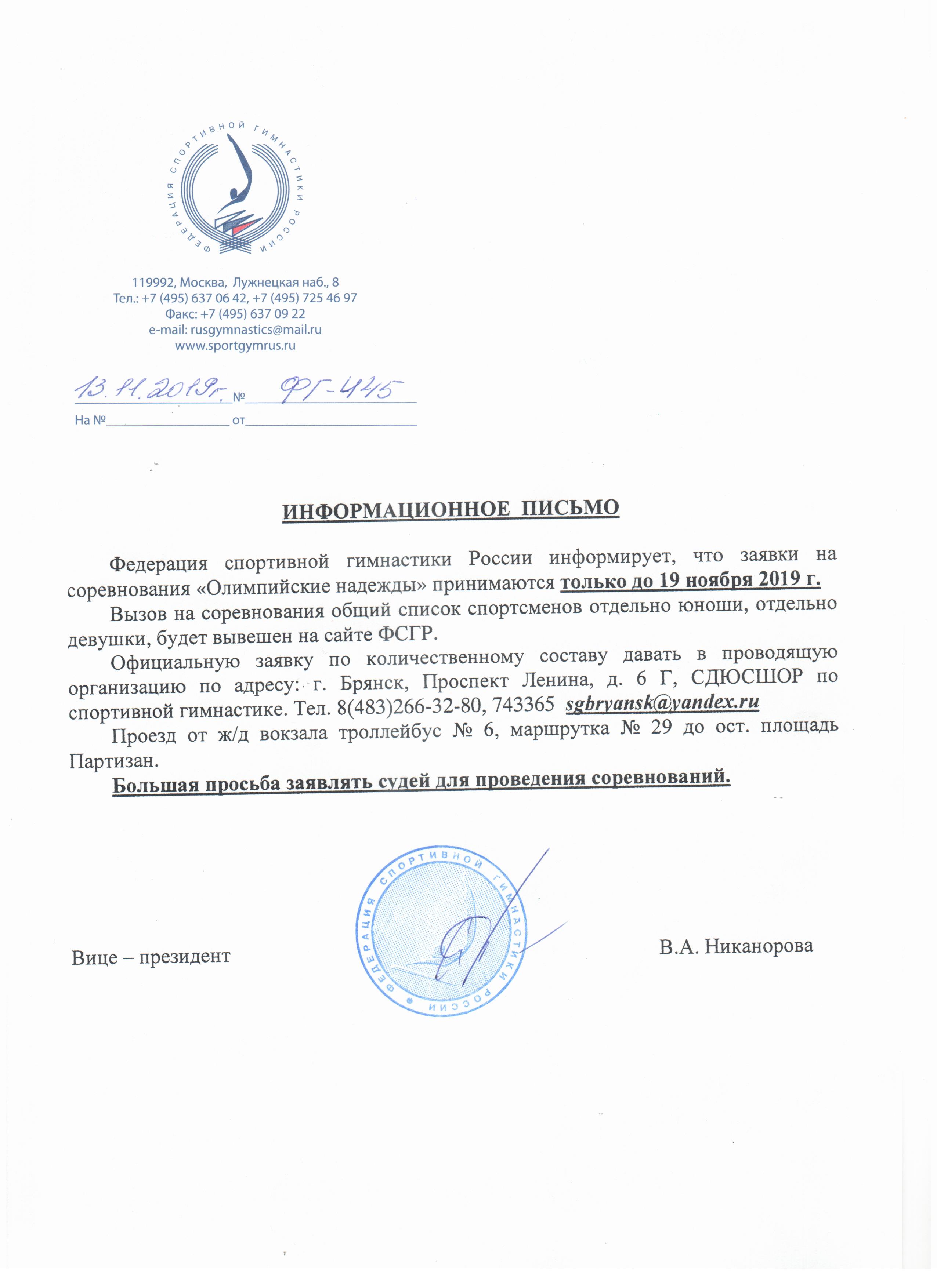 ВНИМАНИЕ! Участникам всероссийских соревнований "Олимпийские надежды" 2019